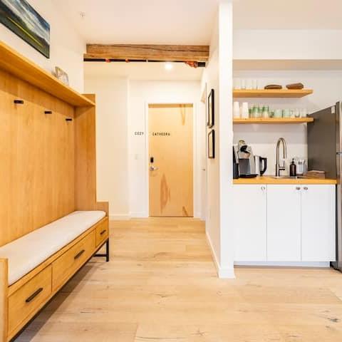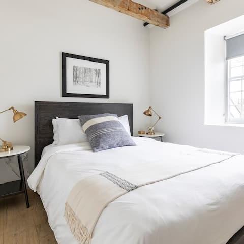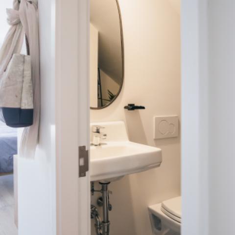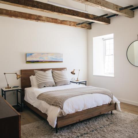 The Rooms at The Stone Mill sit atop an 1840 renovated stone mill building in downtown Middlebury, Vermont. The four lodging units provide a luxurious home base for visitors, family and friends to enjoy during their stay in Middlebury. All units have a queen size bed, private in-room bathroom, individual temperature control and share a comfortable common area. Designed by Slate Home of Burlington, the interiors provide a fresh and modern aesthetic. Visitors benefit from immediate proximity to downtown, shopping, Middlebury College, parking and local walking trails. Questions? Please check out our FAQ first.